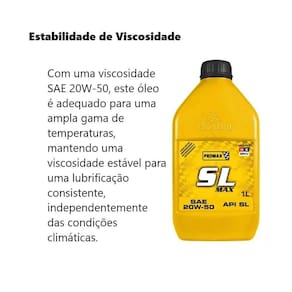 O óleo do motor sae 20w-50 sl max da bardahl é uma escolha confiável para manter o desempenho e a proteção do motor do seu veículo. Formulado com padrões rigorosos da api sl, este óleo oferece uma lubrificação eficaz, ajudando a reduzir o desgaste e o atrito nas peças do motor. Sua viscosidade 20w-50 o torna adequado para uma ampla faixa de temperaturas, proporcionando uma lubrificação consistente em condições variadas. Com um litro de capacidade, esta embalagem é conveniente para manter o seu motor funcionando suavemente e protegido.
