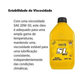 O óleo do motor sae 20w-50 sl max da bardahl é uma escolha confiável para manter o desempenho e a proteção do motor do seu veículo. Formulado com padrões rigorosos da api sl, este óleo oferece uma lubrificação eficaz, ajudando a reduzir o desgaste e o atrito nas peças do motor. Sua viscosidade 20w-50 o torna adequado para uma ampla faixa de temperaturas, proporcionando uma lubrificação consistente em condições variadas. Com um litro de capacidade, esta embalagem é conveniente para manter o seu motor funcionando suavemente e protegido.
