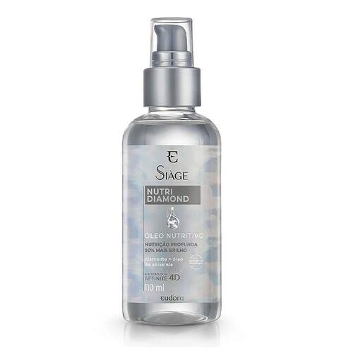 O Óleo Capilar Eudora Siage Nutri Diamond 110ml é ideal para quem busca uma nutrição intensiva para os cabelos. Isso porque ele possui uma formula com ativos que proporcionam uma recuperação dos nutrientes naturais dos fios, proteção térmica e ate 90% mais brilho.
