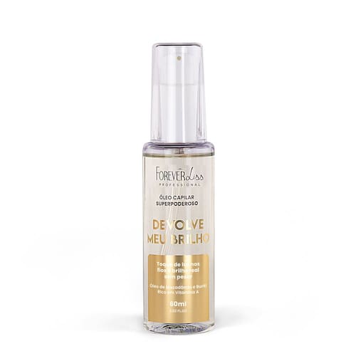 Rico em vitamina A, o Óleo Capilar Superpoderoso Devolve Meu Brilho Forever Liss 60 ml realça e devolve o brilho natural dos fios. Seu uso promove um toque sedoso, aspecto saudável e efeito luminoso com brilho e nutrição imediatos.
