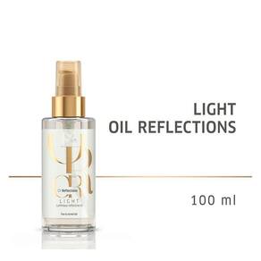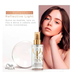 O Óleo Capilar Wella Professionals Oil Reflections Reflective Light é indicado para cabelos finos à normais. Possui textura leve que nutre, protege e deixa o cabelo macio e com efeito gloss luminoso. Além disso, possui tecnologia que deixa a sensação de fios mais densos, nutrindo os fios na medida e deixando o cabelo com brilho instantâneo. Pode ser usado para proteger dos danos causados por química, como pré-shampoo e tratamento noturno. Benefícios: - Textura leve; - Nutre instantaneamente os fios; - Brilho intenso. Resultado: Cabelo nutrido, macio e luminoso, sem pesar. Modo de usar: Aplique nos fios quando desejar, comprimento e pontas. Você pode usá-lo adicionando algumas gotas à máscara da linha, aumentando a reparação e garantindo maior maleabilidade.