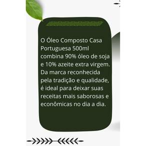 Descubra o Óleo Composto Casa Portuguesa, uma combinação perfeita de 90% de óleo de soja e 10% de azeite de oliva extravirgem, ideal para suas receitas diárias. Com um volume de 500ml, este óleo é livre de glúten, tornando-se uma opção saudável para todos.