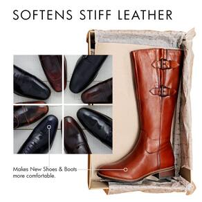 - Suaviza o couro rígido e deixa novos sapatos e botas mais confortáveis
