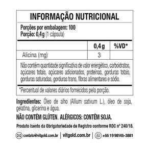 Óleo de Alho 1500 mg Vitgold Kit 3x 100 cápsulas O Óleo de Alho VitGold é um suplemento alimentar em cápsulas que oferece uma forma concentrada e prática de consumir o alho no dia a dia. Cada cápsula fornece 1500mg de óleo de alho, conhecido por ser um aliado em dietas equilibradas e rotinas saudáveis. Contribui para uma alimentação rica em compostos naturais, como alicina, presentes no alho. Recomendação de Consumo Sugere-se 1 cápsula ao dia durante a refeição principal, desta forma você aumenta a de nutrientes essenciais para o bom funcionamento do seu organismo. Ingredientes Óleo de alho Allium sativum L. , óleo de soja, gelatina, glicerina e água. NÃO CONTÉM GLÚTEN. ALÉRGICOS: CONTÉM SOJA. Marca: Não Informado