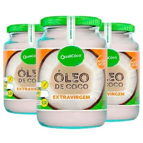 Oleo de Coco Coconut Qualicoco Extra Virgem 500mL 3 vidros O óleo de coco extra virgem Coconut Qualicoco é um produto 100% natural, obtido através da prensagem a frio da polpa do coco fresco. Ele é uma fonte rica de ácidos graxos de cadeia média TCM , como o ácido láurico, que são facilmente metabolizados pelo organismo e se transformam rapidamente em energia. Este óleo é ideal para cozinhar e assar, pois é altamente resistente à oxidação e possui um sabor suave e agradável de coco. Ficha Técnica: Marca: Coconut Qualicoco Nome do produto: Óleo de Coco Extra Virgem Volume: 500 mL Ingredientes: Óleo de coco extra virgem Origem: Brasil Armazenamento: Manter em local seco e arejado, longe da luz solar direta Validade: 24 meses a partir da data de fabricação Alergênicos:O óleo de coco extra virgem Coconut Qualicoco é livre de alergênicos comuns, como glúten, lactose, soja e frutos secos.