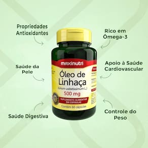 Com suplementos e nutracêuticos formulados com ingredientes de alta qualidade proporcionam resultados eficazes para saúde e bem-estar. Tenha mais energia, imunidade e disposição com nossos produtos. Conheça nossa linha completa Sugestão de uso: Ingerir de 2 cápsulas ao dia de preferência junto com as refeições. Ingredientes: Óleo de linhaça, cápsula: gelatina, glicerina e água. Não contém Glúten. Advertência: Produto indicado para o Grupo Populacional igual ou maior que 19 anos. Este produto não é um . Não exceder a recomendação diária de consumo indicada na embalagem. Mantenha fora do alcance de crianças. Conservação: Conservar ao abrigo da luz, calor e umidade. Após aberto consumir em até 60 dias. Autorização Ministério da Saúde 6.05821-8 Farmacêutico Responsável CRF/PR 13.469 Marca: Não Informado Ean: 7793476842177