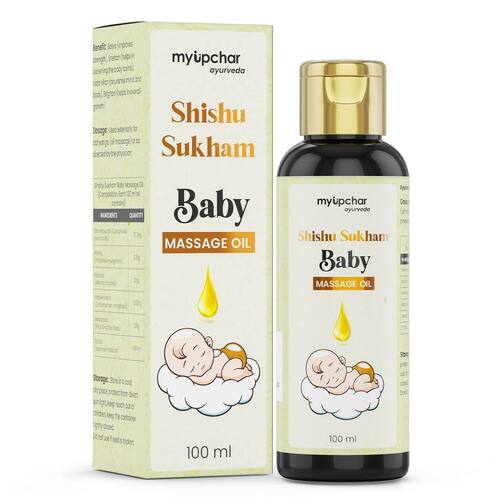 Óleo de massagem para bebês MyUpchar Ayurveda Shishu Sukham 100 ml | Óleo de massagem ayurvédico natural para recém-nascidos e bebês | Fórmula leve e não pegajosa | Enriquecido com Shankhpushpi, óleo de gergelim e extratos de ervas | Óleo de bebê suave, seguro e hidratante | Promove uma pele saudável, fortalece ossos e músculos | Cuidados diários nutritivos para bebês | 100% ayurvédico e livre de toxinas Óleo para bebês testado dermatologicamente — nutre a pele do bebê: o óleo de massagem herbal Shishu Sukham para bebês é enriquecido com ingredientes naturais que nutrem e hidratam profundamente seu pele delicada do bebê, mantendo-a macia e flexível.