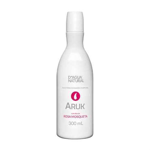 Óleo de Massagem Rosa Mosqueta Aruk 300ml O óleo de Rosa Mosqueta é rico em ácidos graxos insaturados que atuam como nutrientes nos processos fisiológicos e bioquímicos relacionados com a formação do tecido epitelial. Auxilia na prevenção de estrias e do envelhecimento precoce da pele. Suave fragrância. FINALIDADE: É um óleo muito utilizado por profissionais para Drenagem linfática também pode ser utilizado por gestantes e pós-operatório. INDICAÇÃO: Este óleo é uma novidade Dágua Natural que possui delicioso aroma e permite aos esteticistas a utilização de um oleo de massagem altamente deslizante com propriedades que auxiliam no aumento da elasticidade da pele e na prevenção de estrias e do envelhecimento da pele. Pode ser Utilizado por gestantes na prevenção de temidas estrias que podem aparecer no periodo da gestação, pois reforça a elasticidade da pele. COMO APLICAR: Aplicar o produto na pele ainda molhada após o banho ou seca e limpa, faça a massagem conforme a técnica escolhida. O produto proporciona excelente deslizamento e rendimento. É absorvido facilmente, não sendo necessário enxaguar após o uso. Ean: 7896196701936