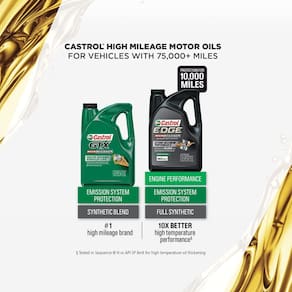 Castrol Edge High Mileage 0W-20 Óleo de motor totalmente sintético avançado, 5 quartos (pacote com 2) - As informações abaixo são apenas por pacote - Tecnologia patenteada de substituição de fósforo para ajudar a prolongar a vida útil do seu sistema de emissão - Desempenho 10 vezes melhor em alta temperatura, conforme medido no teste de motor Sequence IIIH vs. limite de teste API SP - 6 vezes melhor proteção contra desgaste, conforme medido no último teste de motor Sequence IVA - 1,4 x melhor proteção contra lamas, conforme medido no teste de motor Sequence VH vs. limite de teste API SP - Atende ao ILSAC GF-6 para evitar pré-ignição de baixa velocidade (LSPI) e proteção contra desgaste da corrente de distribuição