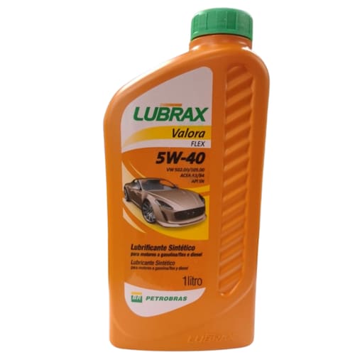 O Lubrax Valora Flex 5W-40 é um óleo lubrificante sintético de alta performance, formulado para oferecer máxima proteção e desempenho em motores a gasolina, etanol, flex e GNV. Sua avançada tecnologia controla a formação de depósitos, mesmo sob condições severas, reduzindo o desgaste e a corrosão das partes lubrificadas. Atende às especificações API SN e ACEA A3/B4, sendo especialmente recomendado para veículos Renault e Volkswagen fabricados até 2014 que exigem as especificações VW 502.00 e VW 505.00. Para melhores resultados, siga as recomendações do fabricante do veículo quanto aos intervalos de troca e armazene o produto em local seco e protegido de fontes de calor.