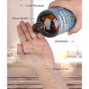 - Benefícios versáteis – O óleo de rícino orgânico prensado a frio nutre e hidrata o couro cabeludo, promovendo o crescimento saudável do cabelo e reduzindo a caspa. Não apenas para o cabelo, o óleo de rícino orgânico prensado a frio não refinado também suporta o crescimento de sobrancelhas mais grossas e mais cheias e cílios mais longos e exuberantes, melhorando a estética geral do rosto.