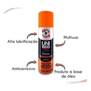 O Desengripante UNI1000 é um óleo desengripante, lubrificante e protetivo com alto poder de , inicialmente desenvolvido para ser aplicado em partes metálicas, protegendo componentes dos carros e motos, além de lubrificar, criando na aplicação, uma camada protetora contra oxidação e umidade de peças em geral.