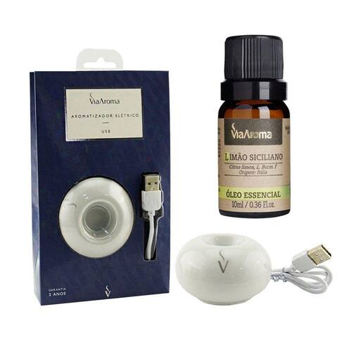 ÓLEO ESSENCIAL LIMÃO SICILIANO COM AROMATIZADOR ELÉTRICO USB VIA AROMATIZADOR
