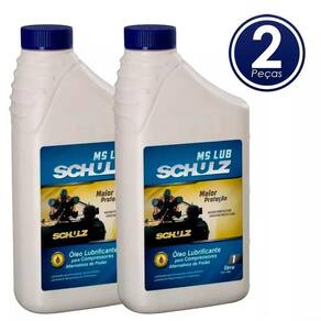 CARACTERÍSTICASO óleo lubrificante MS LUB da Schulz é essencial para o bom funcionamento e a manutenção dos compressores de ar da linha Schulz e Wayne.Suas funções incluem a prevenção do desgaste, a redução do atrito, a proteção dos componentes contra oxidação e corrosão, a vedação de espaços e circuitos submetidos à pressão e auxílio no arrefecimento, entre outras.Trocar regularmente o óleo é tão importante quanto utilizar óleos adequados para compressores de ar, que possuem características diferenciadas em relação aos óleos comuns.O óleo Lubrificante MS LUB foi desenvolvido para o bom funcionamento e a manutenção dos compressores de ar pistão;A troca regular do óleo é tão importante quanto utilizar óleo adequado para compressores de ar, que possuem características diferenciadas em relação aos óleos automotivos comuns;VANTAGENS- Possui viscosidade ISO VG 100, tornando-o um dos mais eficientes do mercado;- Embalagem com 1 Litro;- Protege contra o desgaste;- Reduz o atrito;- Protege da oxidação;- Protege da corrosãoESPECIFICAÇÕES- Marca: SCHULZ- Modelo: MS LUB 1LT x 2- Quantidade: 2 Unidades- Composição: Óleo mineral derivado do petróleo e aditivos- Viscosidade ISO VG100- Peso Líquido: 1 L- Peso Bruto: 1,1 L- Dimensão L x A x C (mm): 330 x 240 x 510