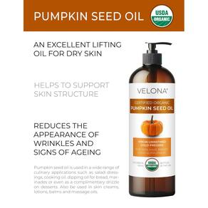 - Óleo de abóbora orgânico certificado USDA: 100% puro e natural. Prensado a frio. Não diluído, sem OGM, sem aditivos, sem fragrância, sem produtos químicos, sem álcool.