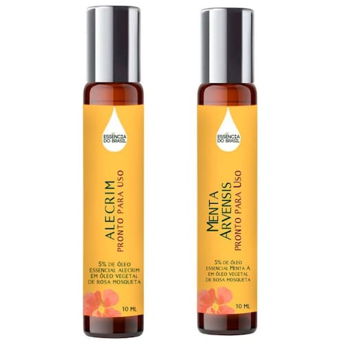 Óleos Essenciais Prontos Alecrim e Menta Roll On 10ml kit Óleos Essenciais Roll-On Pronto para Uso. Experimente o poder transformador da aromaterapia com nosso kit exclusivo de óleos essenciais roll-on. Prontos para uso e enriquecidos com óleo vegetal de Rosa Mosqueta, esses óleos foram desenvolvidos para diferentes momentos do seu dia, promovendo equilíbrio e bem-estar. Os óleos essenciais são reconhecidos por suas propriedades terapêuticas. Selecionamos dois óleos essenciais para você. Alecrim: Revigorante e , o óleo essencial de Alecrim é conhecido por promover clareza mental e vitalidade. Menta Arvensis: Refrescante e , oferece clareza mental e energia renovada. Benefícios do Óleo Vegetal: Rosa Mosqueta: Rico em ácidos graxos essenciais e vitaminas, o óleo de Rosa Mosqueta é altamente eficaz na regeneração da pele, auxiliando na redução de cicatrizes, manchas e sinais de envelhecimento. Óleo Essencial 5% em Óleo Vegetal de Rosa Mosqueta 10ml Roll-On Pronto para Uso: - Composição: 5% de óleo essencial em óleo vegetal de Rosa Mosqueta. - Descrição: Pronto para uso direto na pele, este roll-on é uma combinação perfeita dos benefícios do óleo essencial com as propriedades regeneradoras do óleo de Rosa Mosqueta. Ideal para aplicação em áreas específicas, promovendo hidratação e regeneração cutânea, além de proporcionar uma sensação de relaxamento imediato. Precauções: - Mantenha fora do alcance de crianças. - Evite contato com os olhos e mucosas. - Em caso de irritação, suspenda o uso e consulte um médico. - Uso externo apenas. - Não aplicar diretamente na pele se houver sensibilidade. Modo de Uso: - Roll-On Pronto para Uso: Aplique diretamente nas áreas desejadas, como pulsos, têmporas e atrás das orelhas. Compacto e prático, este kit oferece conforto e bem-estar onde quer que você esteja. Os benefícios naturais do óleo essencial, transforme sua rotina de bem-estar com nosso kit Marca: Não Informado