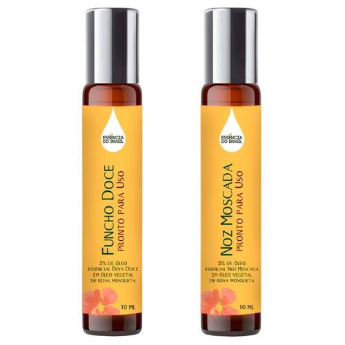 Óleos Essenciais Prontos Erva Doce, Noz-Moscada Roll On 10ml kit Óleos Essenciais Roll-On Pronto para Uso. Experimente o poder transformador da aromaterapia com nosso kit exclusivo de óleos essenciais roll-on. Prontos para uso e enriquecidos com óleo vegetal de Rosa Mosqueta, esses óleos foram desenvolvidos para diferentes momentos do seu dia, promovendo equilíbrio e bem-estar. Os óleos essenciais são reconhecidos por suas propriedades terapêuticas. Selecionamos dois óleos essenciais para você. Funcho Doce Erva Doce : Com aroma doce e , é apreciado por seu conforto e equilíbrio emocional. Noz-moscada: Picante e quente, desperta vigor e aquece o ambiente com sofisticação. Óleo Essencial 5% em Óleo Vegetal de Rosa Mosqueta 10ml Roll-On Pronto para Uso: - Composição: 5% de óleo essencial em óleo vegetal de Rosa Mosqueta. - Descrição: Pronto para uso direto na pele, este roll-on é uma combinação perfeita dos benefícios do óleo essencial com as propriedades regeneradoras do óleo de Rosa Mosqueta. Ideal para aplicação em áreas específicas, promovendo hidratação e regeneração cutânea, além de proporcionar uma sensação de relaxamento imediato. Precauções: - Mantenha fora do alcance de crianças. - Evite contato com os olhos e mucosas. - Em caso de irritação, suspenda o uso e consulte um médico. - Uso externo apenas. - Não aplicar diretamente na pele se houver sensibilidade. Modo de Uso: - Roll-On Pronto para Uso: Aplique diretamente nas áreas desejadas, como pulsos, têmporas e atrás das orelhas. Compacto e prático, este kit oferece conforto e bem-estar onde quer que você esteja. Marca: Não Informado
