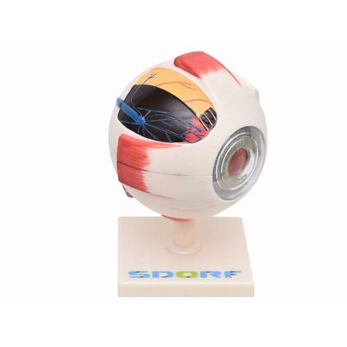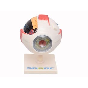 O modelo anatômico de olho ampliado em aproximadamente 10 vezes e dividido em 7 partes, e confeccionado em PVC e acrílico; O modelo SD-5043 apresenta as seguintes estruturas entre outras: Corpo Ciliar; Zônula Ciliar; Íris; Pupila; Pólo Anterior; Pólo Posterior; Câmara Anterior; Câmara Posterior; Córnea; Borda Serreada; Lente; Retina; Coroide; Esclera; Nervo Ótico; Corpo Vítreo; Músculo Elevador Da Pálpebra Superior; Músculo Reto Medial; Músculo Reto Lateral; Músculo Reto Inferior;- Montado sob base plástica; Acompanha: 01 Base plástica 01 Haste 01 Manual em português, 01 Termo de garantia. embalagem: Caixa de papelão. informação adicionalPeso 0.210 kg Dimensões 12 x 17 x 8 cm
