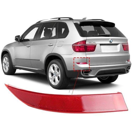 Lanterna refletor do parachoque Traseiro, ou olho de gatoLado Esquerdo Motorista Feito de acrilico ABS, excelente acabamentoAplicação:Bmw E70 X5 xDrive35i e xDrive50i - 2011, 2012, 2013, 2014Código: 63147240997Peça nova, importada, similar à originalGarantia de 3 meses