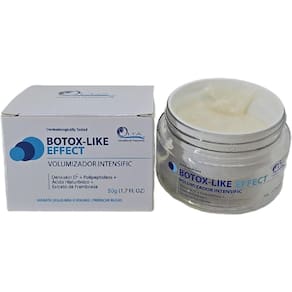Creme botox-like effect - facial hidrata equilibra os volumes preenche rugas Ação na reposição dos volumes faciais. Reparação e antifadiga; Regenerador de pele; Estimula a longevidade; Restaura a densidade da pele; Indicado para peles desvitalizadas. Indicação Reequilibra os volumes do rosto e recupera a densidade através de um peptídeo volumizador e dos sacarídeos da peonia. As rugas são reduzidas, os contornos do rosto são redefinidos e a pele recupera a tonicidade e a firmeza. Fórmula altamente nutritiva e rica em ômegas, 6, 7 e 9, esqualano vegetal, vitamina e, confere extra vitalidade, traços mais harmoniosos e uma pele visivelmente mais jovial. Indicada para todo tipo de pele.