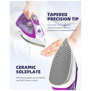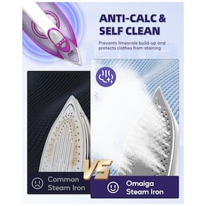 RÁPIDO E EFICIENTE O ferro a vapor OMAIGA aquece rapidamente em 30 segundos e fornece uma saída de vapor potente, e a taxa de vapor de 25g , min pode remover rugas da roupa facilmente e torná la lisa e bem passada, mostrando seu look perfeito em um momento. MULTIFUNÇÕES PODEROSAS Ferro a vapor OMAIGA combina vapor paralelo e vertical, ferro seco e ferro a vapor. Com 5 configurações de vapor ajustáveis vapor contínuo, jato de vapor e spray de água, distribuição científica por orifícios de vapor com a função de ajustar a saída de vapor para uma remoção mais eficaz de rugas da roupa. FERRO NÃO Todo ferro a vapor para roupas passou por um TESTE funcional antes de ir para o , por isso é NORMAL quando você vir um pouco de ÁGUA sobrando em seu tanque