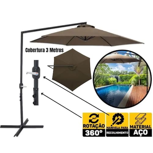 Ombrelone Suspenso Veneza Suspenso 3,00m Marrom Bel com Base de Apoio em Cruz