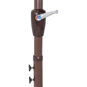 Cobertura: Poliéster Acompanha Base: Sim Haste: 48 mm Acionamento Ombrelone: Manivela Dimensões Ombrelone: 300 cm x 300 cm x 245 cm Giratório: Sim Estrutura: Aço Cor: Marrom Dimensões aproximadas montado (C x L x A): 168 cm x 28 cm x 13 cm