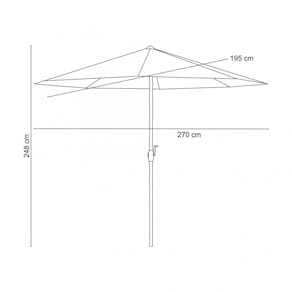 A capa tem cobertura de 2,70 m de diâmetro em tecido poliéster 180g/m². Possui manivela para abertura.