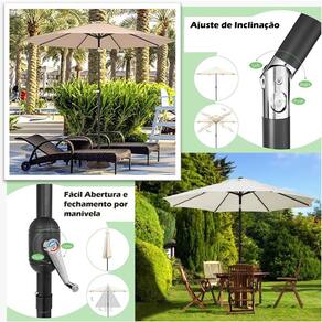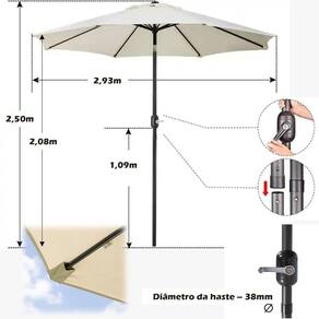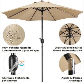 ( Fácil Operação ) O ombrelone facilita o uso. Basta girar a manivela para abrir o ombrelone. Caso deseja alterar a inclinação da cobertura é só pressionar o botão na articulação.