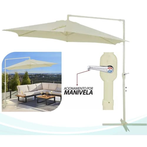 Ombrelone Guarda Sol Lateral Bel Veneza Bege com 3 Metros de Diamentro com Base de Apoio em X