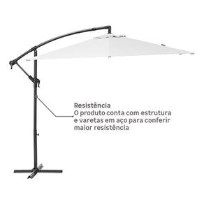 Este ombrelone lateral e a escolha perfeita para adicionar estilo e funcionalidade ao seu espaco externo, seja jardim, piscina ou terraco. Com uma estrutura robusta em aluminio e aco na cor branca, ele oferece durabilidade e resistencia as condicoes climaticas adversas.