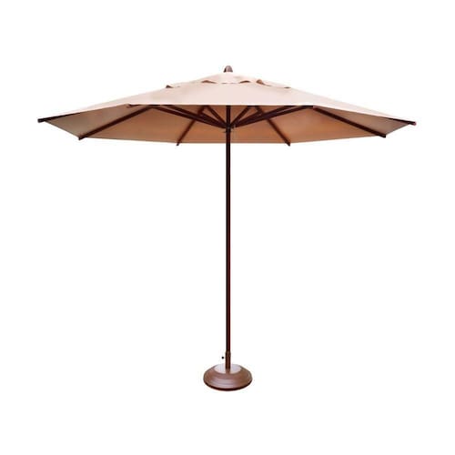 O Ombrelone é um item único, elegante e funcional para dar mais estilo ao seu jardim com o conforto que você merece. Ele pode ser combinado com um conjunto de mesa e cadeiras ou até mesmo com uma espreguiçadeira enquanto você curte a sua piscina. Ombrelones e guarda-sóis são opções para proteger a pele do sol à beira da piscina e também trazer um toque decorativo para a área externa. O ombrelone, no entanto, requer uma base que pode variar em modelos. Estrutura em Madeira Tratada e tecido bagun bege com proteção UV.
