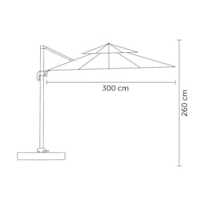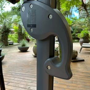 Base cruz não inclusa. Altura: 260 cm Ambiente Principal: Jardim e Varanda codigo_ean: 7900288169631 Complexidade da Montagem: Baixa: pode ser montado por uma pessoa sozinha Comprimento: 310 cm Cor: Grafite Cor do Produto: Grafite Cor Predominante: Cinza Formato: Redondo Giratório: Sim Itens Inclusos: 1 Ombrelone, Kit Montagem e Manual Largura: 300 cm Linha ou Coleção: Belize Manual de Montagem e Instalação: https://cdn2.madeiramadeira.com.br/atributo/rivatti/2986833-6297-17494936957696.pdf Marca: Rivatti Material da Cobertura: Poliéster Material da Haste: Alumínio Material das Varetas: Alumínio Necessita Montagem: Sim Origem do Produto: Importado Peso: 25 kg Possui Base: Não Sistema de Acionamento Abre e Fecha: Manivela Sistema de Montagem: Kit Montagem