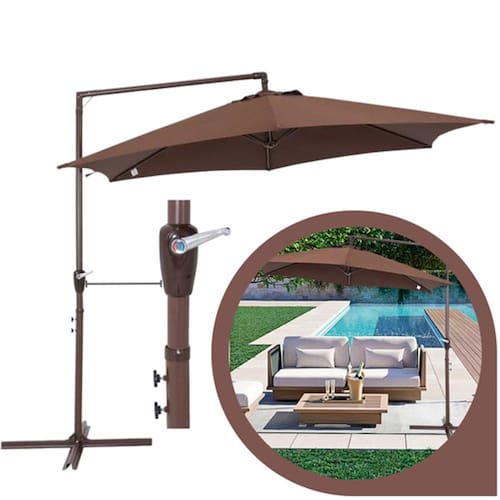 Cobertura: Poliéster Acompanha Base: Não Haste: 48 mm Acionamento Ombrelone: Manivela Dimensões Ombrelone: 300 cm x 300 cm x 245 cm Giratório: Sim Estrutura: Aço Cor: Marrom Dimensões aproximadas montado (C x L x A): 168 cm x 28 cm x 13 cm