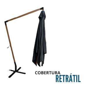 Ombrelone Lateral Suspenso Estrutura Madeira 3m Gigante Manivela Jardim Importway Iwoblm-300 - Cor: Preto