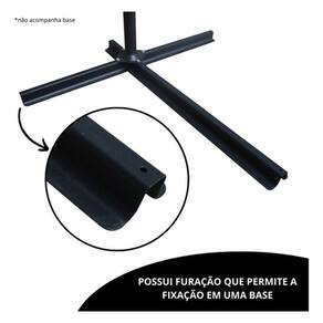 • Cobertura em poliéster • Cobertura de 3,00m de diâmetro / Altura 2,45m • Haste em Aluminio 48mm de diâmetro com manivela • Varetas em ferro • Acompanha base de encaixe em formato de cruz