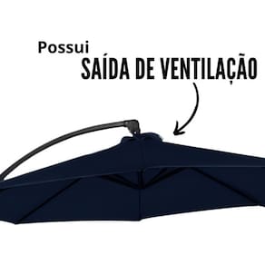 • Cobertura em poliéster • Cobertura de 3,00m de diâmetro / Altura 2,45m • Haste em Aluminio 48mm de diâmetro com manivela • Varetas em ferro • Acompanha base de encaixe em formato de cruz