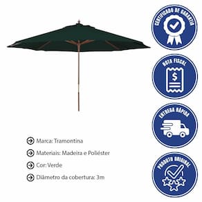 - Para curtir aquele dia de sol com os amigos e familiares na volta da piscina não pode faltar o Ombrelone Tramontina em Madeira e Poliéster Verde sem Base 3 m de diâmetro da linha Ombrelones.