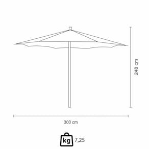 - Possui 3,0m de diâmetro da cobertura, 37mm de diâmetro do mastro central e 9,27kgs.