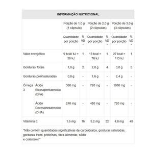 DESCRIÇÃO Este produto é um suplemento à base de óleo de peixe que oferece excelente dosagem de ômega 3 e seus ativos EPA 1080 mg e DHA 720 mg por porção, auxiliando na manutenção dos níveis de triglicerídeos, além de atuar sobre o aprendizado, memória e na saúde dos olhos. Este ômega possui as certificações Fish Oil Standards Program IFOS e Friend Of The Sea FOS , referências mundiais no controle de qualidade do ômega 3 e na conservação do habitat marinho. Significando que o nosso produto cumpre com todas as normas que asseguram a isenção de contaminantes ambientais e o respeito à pesca saudável, definidas pelos principais órgãos reguladores, dentre eles a Organização Mundial da Saúde OMS .