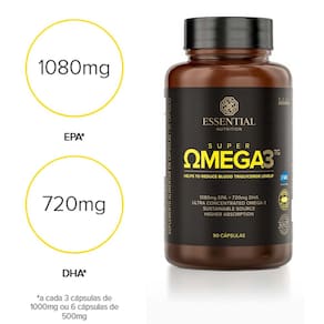 Super Ômega 3 TG Essential é um suplemento de ômega-3 (EPA e DHA) na forma TG - mesma forma encontrada na natureza, o que favorece o aproveitamento no organismo. É obtido por processo patenteado de destilação molecular e com padrões de pureza extremamente rígidos em relação a metais pesados e demais contaminantes, como PCBs, mercúrio e dioxinas.