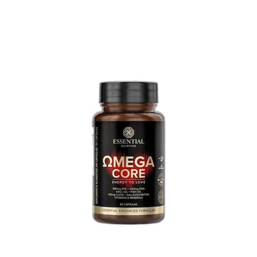 Ômega Core 60 caps - nova embalagem - Padrão: Único Ômega Core 60 caps - Essential Nutrition Ômega Core 60 Cápsulas da Essential Nutrition, é um suplemento de ômega-3, formulado com a combinação de óleo de peixe na forma de triglicerídeos TG e óleo de krill em fosfolipídios, enriquecido com astaxantina, coenzima Q10, vitaminas do complexo B e os minerais zinco, cobre e cromo. As vitaminas B6, B9 e B12 auxiliam no metabolismo da homocisteína, um aminoácido presente no sangue que está relacionado com o sistema cardiovascular. Os minerais zinco e cobre são antioxidantes que auxiliam na proteção dos danos causados pelos radicais livres. Além disso, Ômega Core possui os selos de excelência Superba Boost; tecnologia patenteada que utiliza exclusivamente métodos de fracionamento eficientes a baixas temperaturas, remove sais indesejados e outros constituintes polares, concentrando apenas os componentes benéficos. E Selo Kaneka Q10 é a única CoQ10 fabricada nos EUA e é o ingrediente mais puro e o mais utilizado nas pesquisas. Produzida através da fermentação de levedura Kaneka Q10 é bioidêntica a CoQ10 produzida pelo nosso organismo, dessa forma tornando um produto puro e de alta qualidade. Benefícios: - Contém óleo de krill;- Age contra os radicais livres;- Contém óleo de peixe;- Ingredientes selecionados;- Contém astaxantina;- Alta concentração de EPA e DHA- Livre de metais pesados e outros contaminantes;- Alto nível de pureza.