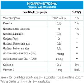 Suplemento nutricional de ômega 3, extraído de peixes de águas frias e profundas com alta concentração de epa 748mg e dha 466 mg por dose.
