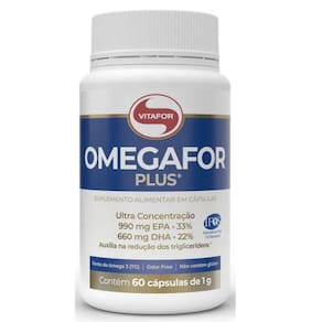 ÔMEGAFOR PLUS® Vitafor é um suplemento alimentar ultra concentrado em óleo de peixe (fonte de Ômega 3- TG) fonte de EPA (ácido eicosapentaenóico) – 990mg e DHA (ácido docosahexaenóico) – 660mg para cuidar da sua saúde.