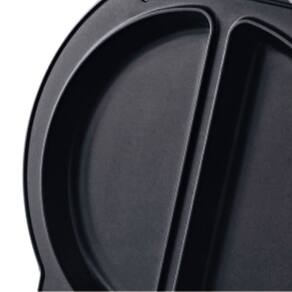 Faz 2 omeletes por vez no formato barquete. Placas antiaderentes que facilitam a limpeza. Base antiderrapante. Luz indicadora de funcionamento.Base antiderrapante