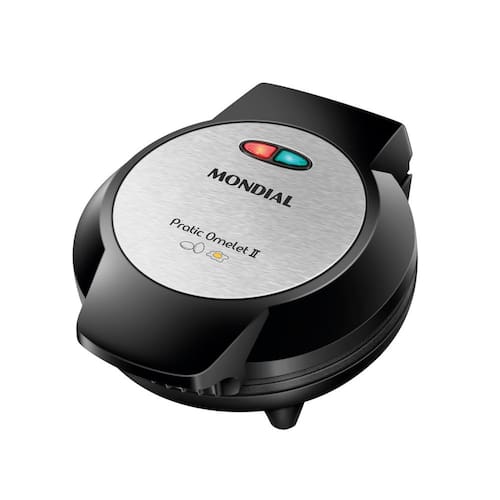 Omeleteira elétrica Mondial Pratic Omelet II, prepara dois omeletes simultaneamente, possui revestimento antiaderente, potência de 800W e acabamento em aço inox., Omeleteira elétrica Mondial Pratic Omelet II, prepara dois omeletes simultaneamente, possui revestimento antiaderente, potência de 800W e acabamento em aço inox.Base antiderrapante