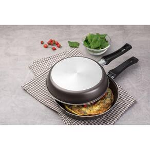 Omeleteira de alumínio com revestimento interno de antiaderente Ø20cm Disponíveis nas cores vermelho ou grafite, as panelas da Linha Loreto fazem sucesso na sua cozinha. Além da praticidade do cozimento uniforme, proporcionado pelo revestimento Starflon T1, elas permanecem bonitas por muito mais tempo. São fáceis de limpar, pois, devido ao antiaderente, os alimentos não grudam. As tampas de vidro temperado e bordas de aço inox permitem acompanhar o cozimento abrindo as panelas com menos frequência. Os cabos e alças de baquelite antitérmico e pegadores de nylon dão segurança durante o manuseio. Podem ser utilizadas em fogão a gás, elétrico e vitrocerâmico (resistência elétrica) e levadas à máquina de lavar louças. Informações Gerais Corpo de alumínio com espessura de 1,6 mm que proporciona cozimento rápido e uniforme. Revestimento interno e externo de antiaderente Starflon T1. O único com a tecnologia T: maior poder de antiaderência; maior resistência à abrasão; maior durabilidade; mais fácil para limpar e livre de PFOA, garantindo uma resistência à abrasão acima de 5.000 ciclos segundo a Norma ABNT NBR 15321:2013. Cabos de baquelite antitérmico que oferecem segurança durante o manuseio. Pode ir à máquina de lavar louças facilitando seu dia a dia.