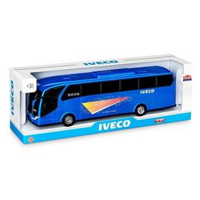 Ônibus de Brinquedo Iveco Connection Cor: Azul O Ônibus Iveco é uma miniatura perfeita de ônibus em forma de brinquedo para a criança brincar e se divertir. Ele é todo adesivado, no qual caso você quiser, pode retirá-los É super divertido. Estimula a interação entre pais e filhos, desenvolve a imaginação, a criatividade, a coordenação motora.