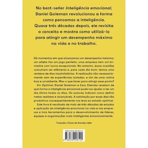 No best-seller Inteligência emocional , Daniel Goleman revolucionou a forma como pensamos a inteligência. Quase três décadas depois, ele revisita o conceito e mostra como utilizá-lo para atingir um desempenho máximo na vida e no trabalho. Há momentos em que alcançamos um desempenho máximo: um atleta faz um jogo perfeito; uma empresa tem um trimestre com lucros excepcionais. No entanto, essas ocasiões costumam ser efêmeras, e, para cada dia bom, temos uma centena de dias insatisfatórios. A realização não necessariamente vem de experiências isoladas, e sim de uma rotina boa e consistente. Mas como atingir esse ponto? Em Optimal , Daniel Goleman e Cary Cherniss revelam como a inteligência emocional pode nos ajudar a ter um ótimo dia frequentemente e como definir metas realistas e alcançáveis. A satisfação por esses períodos tão produtivos consequentemente nos leva ao nível “optimal”. Este livro é resultado de mais de três décadas de estudos e aplicação da inteligência emocional na vida e nas empresas, e traz ferramentas para o desenvolvimento de líderes, equipes e organizações mais inteligentes emocionalmente. Goleman também defende que a IE continuará sendo um diferencial à medida que a automação e a inteligência artificial avançam: “Se toda empresa possuir mais ou menos as mesmas tecnologias e hard skills , a diferença será maior no modo como gerenciam sua força de trabalho”. “Na era da IA, a inteligência emocional é mais importante do que nunca. Qualquer pessoa que lidere uma equipe ou organização deve ler Optimal — ele abrirá sua mente e mostrará o conjunto de habilidades que todos precisamos desenvolver.”— Marc Benioff , presidente e CEO da Salesforce “Ninguém fez mais para nos ajudar a compreender a inteligência emocional do que Daniel Goleman e Cary Cherniss. Em Optimal , eles fornecem uma visão de como usar a inteligência emocional para otimizar o desempenho de indivíduos, equipes e organizações. Este livro merece ser estudado por gestores, treinadores, terapeutas, cientistas e muitos outros.” — Peter Salovey, presidente da Universidade de Yale “ Optimal é uma masterclass em inteligência emocional e alto desempenho.” — Rich Hua, head global do EPIC Leadership, Amazon Web Services