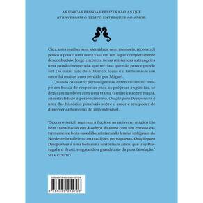 Primeiro romance de Socorro Acioli após A cabeça do santo, Oração para Desaparecer conta a história de uma mulher que, sem lembrança nenhuma de seu passado, precisa reconstruir a vida em um lugar completamente desconhecido, apenas com a língua portuguesa como porto seguro. Cida, uma mulher sem identidade nem memória, reconstrói pouco a pouco uma nova vida em um lugar completamente desconhecido. Jorge encontra nessa misteriosa estrangeira uma paixão inesperada, que recria o que não parece provável. Do outro lado do Atlântico, Joana é o fantasma de um amor há muitos anos perdido por Miguel. Quando os quatro personagens se entrecruzam no tempo em busca de respostas para as próprias angústias, se deparam também com uma trama fantástica sobre magia, ancestralidade e pertencimento. Oração para Desaparecer é uma das histórias possíveis sobre o amor e seu poder de dissolver as barreiras do imponderável. “Oração para Desaparecer é um romance de viagem. […] Escrito com vigor e dedicação, Socorro contribui para ampliar uma literatura com memória, em que a imaginação ativa é capaz de construir diversas realidades, apresentadas com verossimilhança e beleza. É um romance que prende e convence até os leitores incrédulos. Não se pode pedir mais, resta apenas agradecer.” — Pilar del Río “Socorro Acioli regressa à ficção e ao universo mágico tão bem trabalhados em A cabeça do santo, com um enredo extremamente bem-sucedido, misturando lendas indígenas do nordeste brasileiro com tradições portuguesas. Oração para Desaparecer é uma belíssima história de amor, que une Portugal e o Brasil, resgatando a grande arte da pura fabulação.” — Mia Couto Ean: 9786559215706